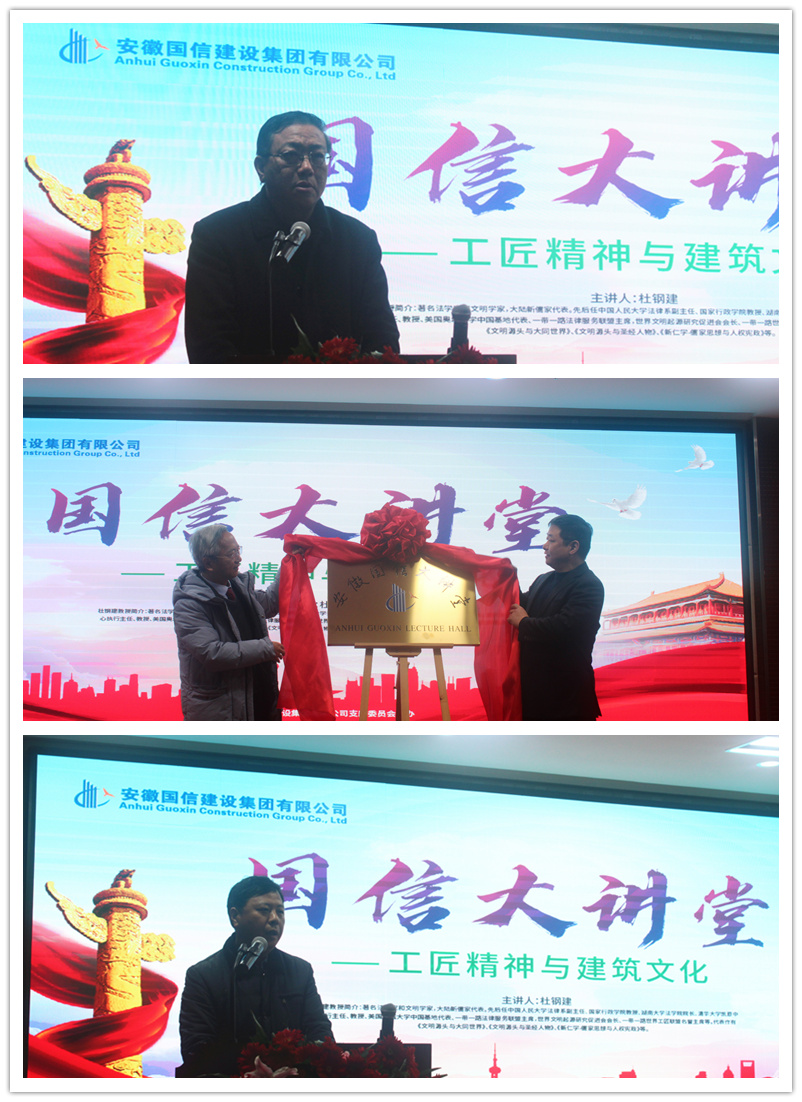 启动仪式上,集团党支部副书记、副总经理张官斌首先在讲话中强调要通过国信大讲堂平台,正面引导广大职工做到调预期、转观念、改作风,自觉讲政治,讲大局,讲正气,讲奉献,讲和谐,争当优秀和表率,确保各项事业持续健康发展。随后,集团党支部书记、董事长周先玉和杜钢建教授共同为“国信大讲堂”揭牌。合肥市包河区工商联副主席宋兴春在致辞中表示,国信大讲堂的开设开讲,是国信集团在新时代立足新发展阶段、贯彻新发展理念、构建新发展格局,锐意进取、追求卓越的一种责任担当,是创新学习教育、建设人才梯队的一大重要创举,更是开云体育的又一传承创新。希望大讲堂持续举办下去,做到统筹兼顾,成为企业的学习品牌;在内容安排上做到丰富多样,坚持正确政治方向、坚持贴近企业发展实际、坚持服务企业发展和人才队伍建设;要注重效果,可以尝试请技术能人、项目经理、管理人员等企业自己人走上大讲堂,用身边人讲身边事或许会有不一样的学习教育效果。