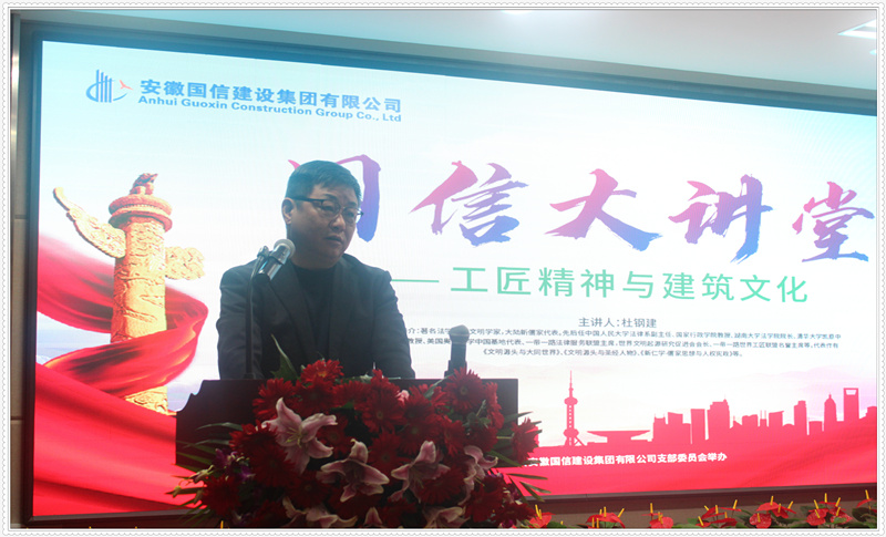 春回大地,万物复苏。在喜迎建党100周年之际,3月20日上午,由国信集团党支部主办的国信大讲堂正式启动,首课邀请我国著名法学家和文明学家、大陆新儒家代表杜钢建教授作《工匠精神与建筑文化》主题讲座,来自集团总部及各子分公司、项目部约180人参加启动会和讲座。