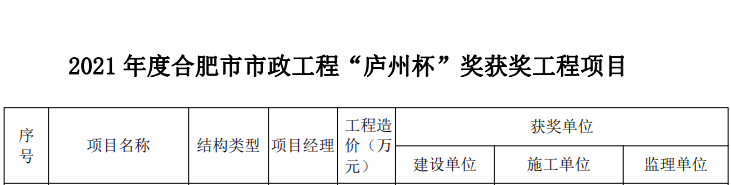 近日,合肥市市政工程协会公布了2021年度合肥市市政工程“庐州杯”奖获奖工程项目名单,由国信集团承建的长丰产业新城红旗路工程项目名列其中,荣获合肥市政工程建设领域质量最高奖项。