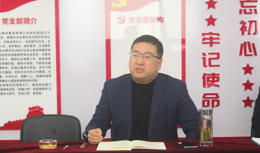 为深入学习贯彻党的二十大精神,进一步加强基层党组织战斗堡垒作用和党员先锋模范作用,提升党员干部队伍凝聚力、战斗力。3月16日下午,安徽国信建设集团有限公司党支部召开2022年度组织生活会,党支部书记、董事长周先玉报告2022年度企业党建工作开展情况,并作表态发言和会议小结,党建指导员、省法院副厅级审判员沈世所对本次组织生活会情况进行点评,和提出要求。党支部副书记、副总经理张官斌主持会议。