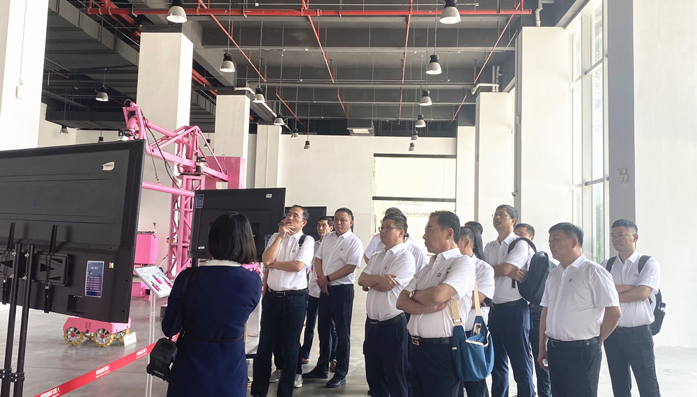 在广东博智林机器人有限公司,考察团参观博智林公司建筑机器人研发成果展厅,现场调研考察佛山新翼花园项目建筑机器人不同场景实际应用情况,听取博智林公司智能建造和建筑机器人研发生产应用等发展情况汇报,并就智能建造产业发展、BIM数字化、建筑机器人研发应用等相关情况进行交流。