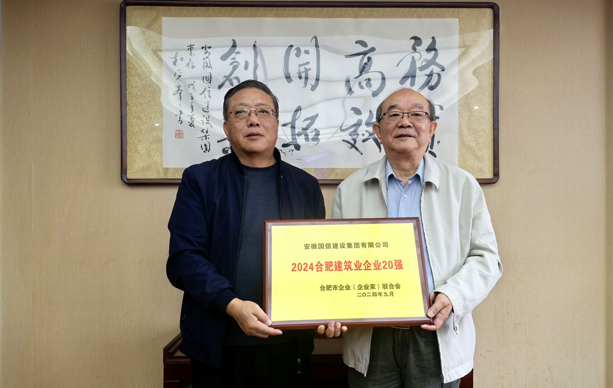 10月22日下午,合肥市企业(企业家)联合会荣誉会长、咨询委主任谢刚一行来国信集团走访调研,并颁发“2024合肥建筑业企业20强”奖牌。国信集团副总经理张官斌、党支部委员何章龙陪同调研。