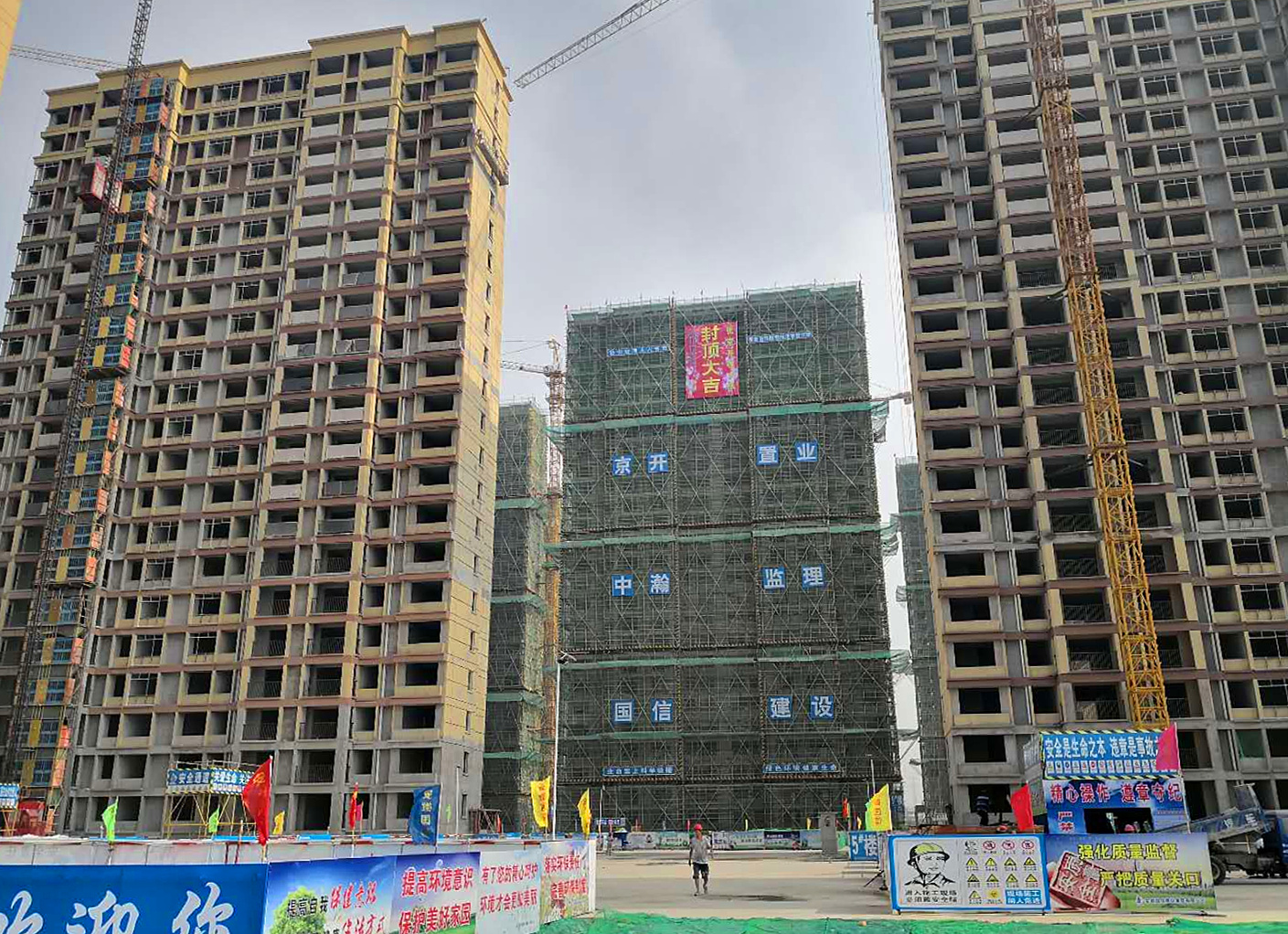 7月30日,由国信集团承建的蒙城京开城A区工程顺利封顶,这是该项目近日顺利通过亳州市安全文明标准化示范工地评审后的又一喜事。国信集团总经理何学松以及各参建单位负责人、项目部全体施工人员等共同见证这一重要时刻。