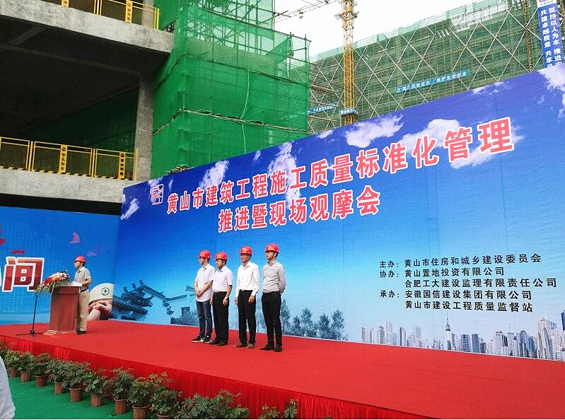黄山市施工质量标准化管理推进暨现场观摩会在国信工地召开