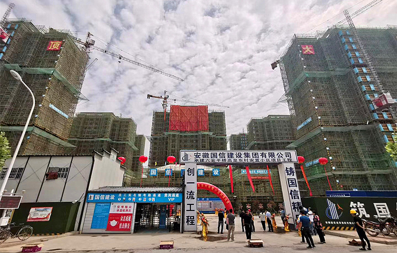 该项目是国信集团在六安地区代建的首个安置房项目,位于平桥工业园金盛路与百建路交口,总建筑面积约17万平米,总投资约3.6亿元,由13栋18层至26层的住宅楼及地下室、配电房、服务房等组成。