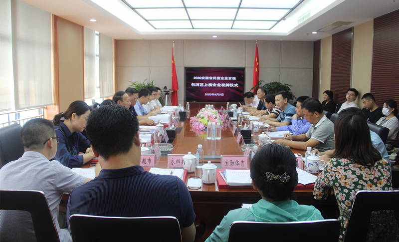 9月9日上午,2020安徽省民营企业百强包河区上榜企业发牌仪式在国信集团举行,包河区工商联、区经信局、区市场监管局、包河经开区等单位领导及2020安徽省民营企业百强包河区上榜企业负责人参加仪式。
