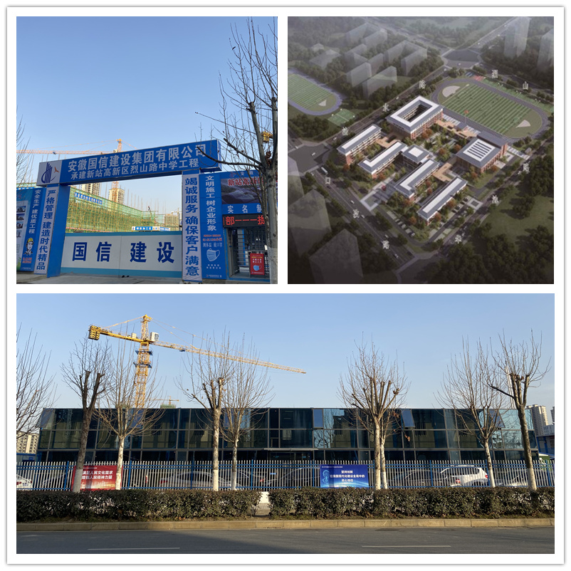 合肥市新站高新区烈山路中学工程施工项目位于口孜路以东,浍水路以南,东临烈山路,南抵华池路,总建筑面积约3万平米,拟定为初中部48个班的规模。主要建设内容包括教学楼、实验楼、行政中心楼、图书信息中心、风雨操场、食堂以及配套的辅助建筑和运动场、道路、绿化工程等。值得一提的是,该项目在工程质量上有严格要求,目标是争创合肥市建筑工程“琥珀杯”奖 (市优质工程)。