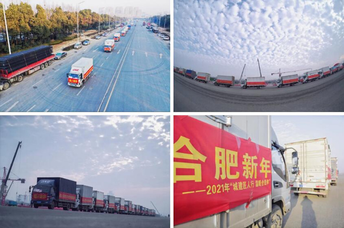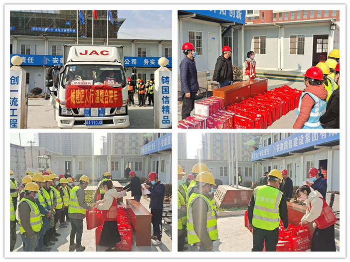 20日上午,装载着新年礼品和物资的数十辆专配货车,带着合肥市城乡建设局和国信集团等爱心企业的暖冬问候与祝福,从合肥骆岗机场集中出发,分赴首批送温暖的33个项目工地。上午10时许,专配货车来到国信集团承建的合肥市包河区社会福利综合服务中心项目现场,将新年礼品和物资发放给项目部一线城建匠人们,提前送上节日的温暖和问候,致敬城市建设者和坚守者。工友们对合肥市城乡建设局和国信集团等爱心企业的的关怀予以感谢,表示要为城市建设贡献更大力量。